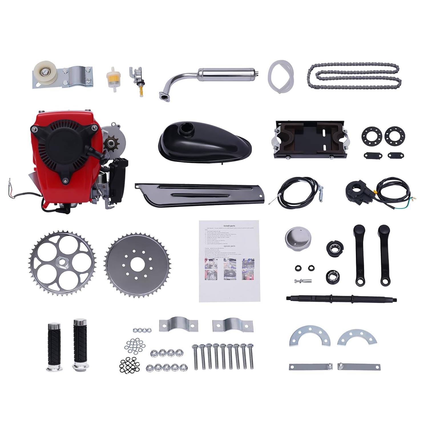 【Suitable for】49cc 4-stroke pull start gasoline conversion kit for adult bicycles, ideal for bicycles with 26-inch frames and similar frames.